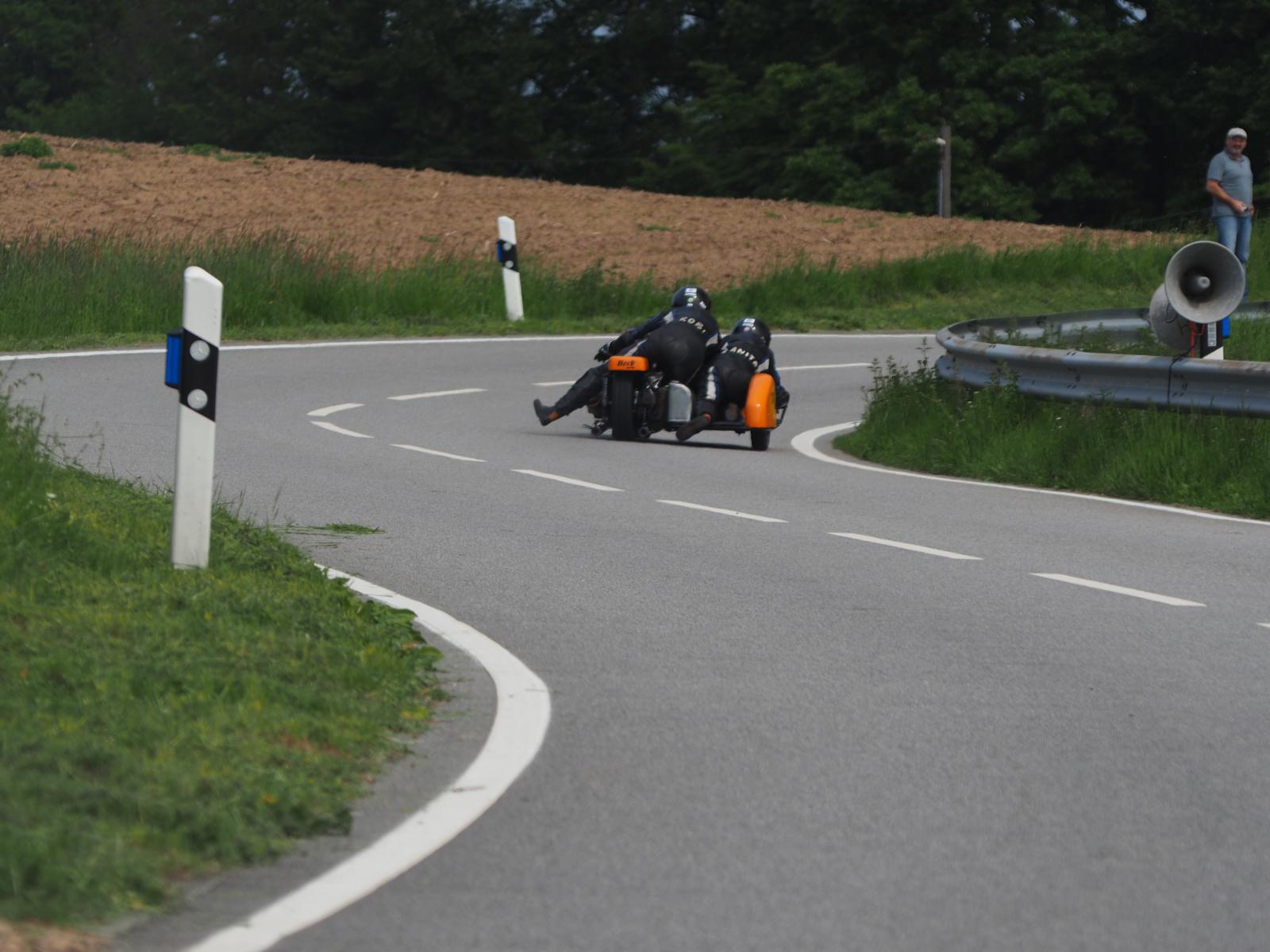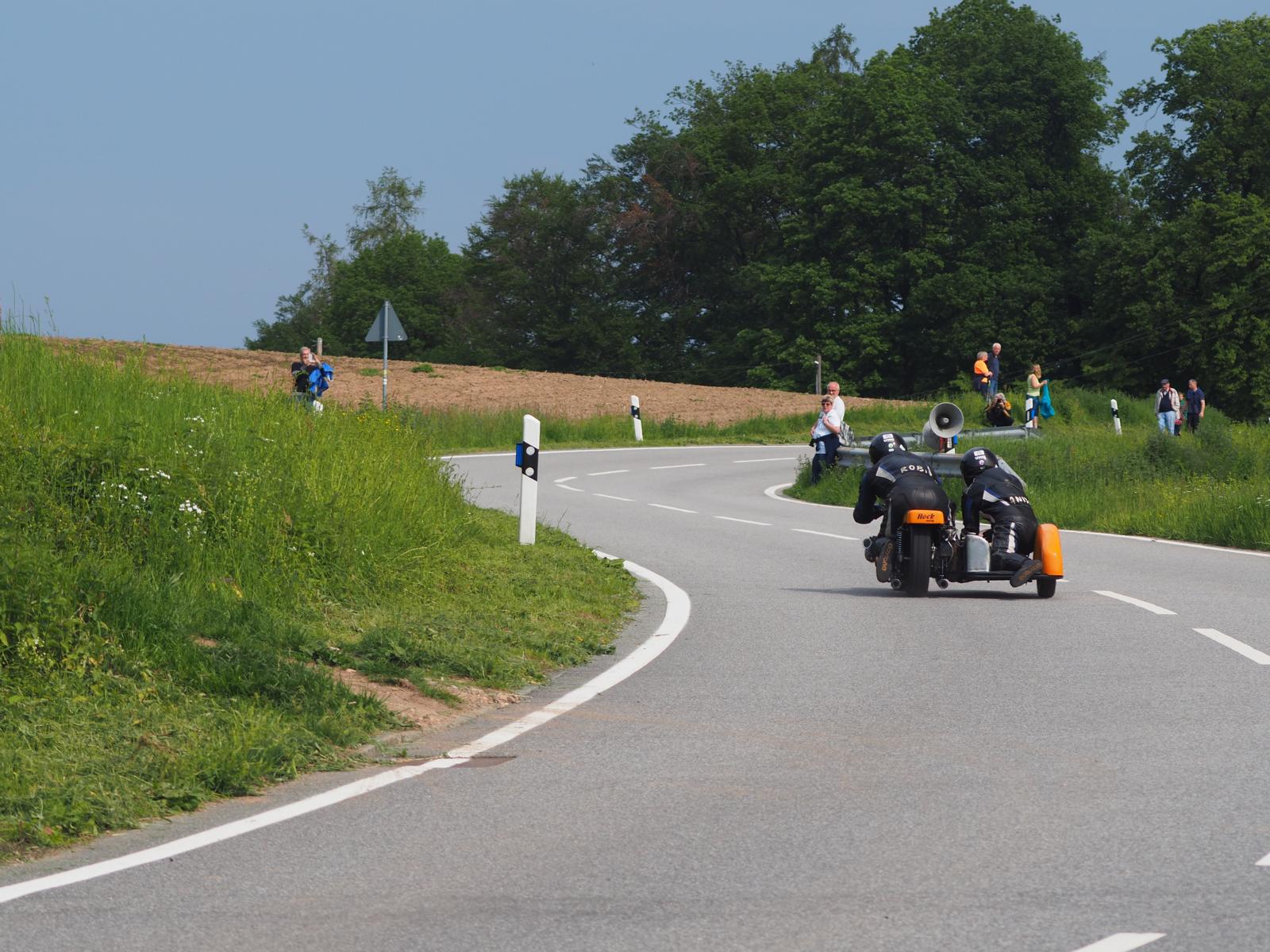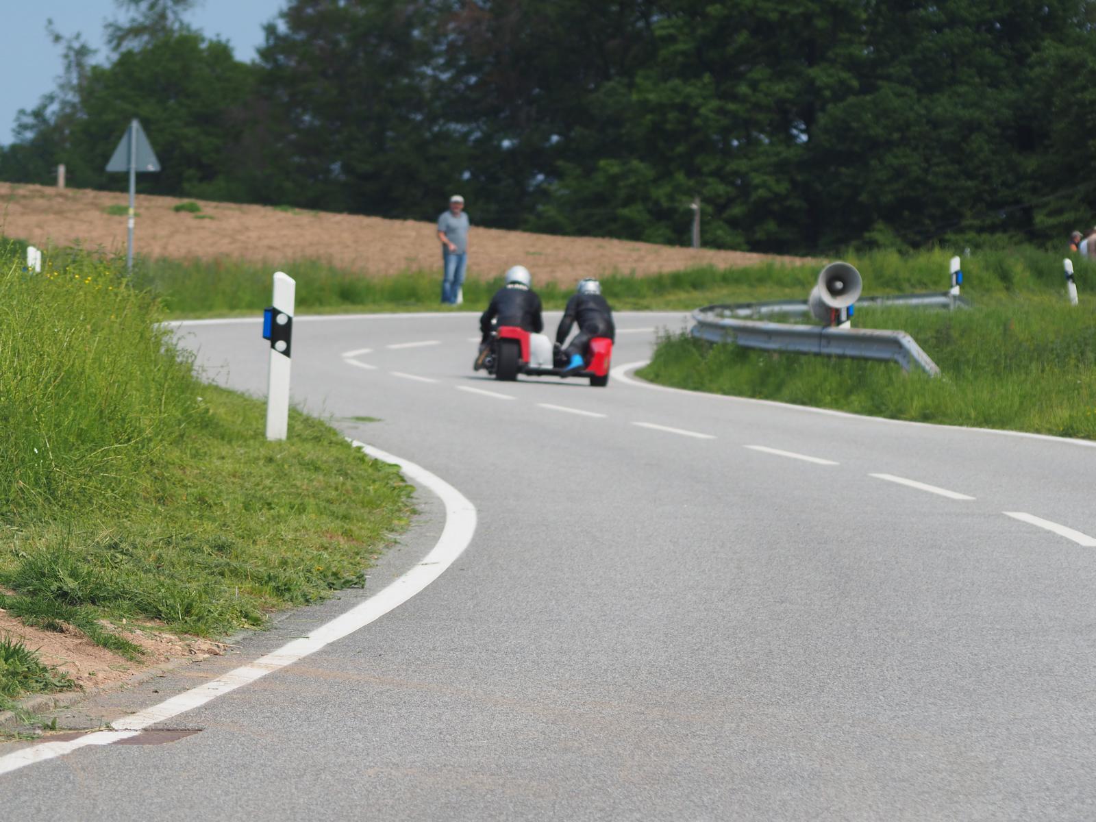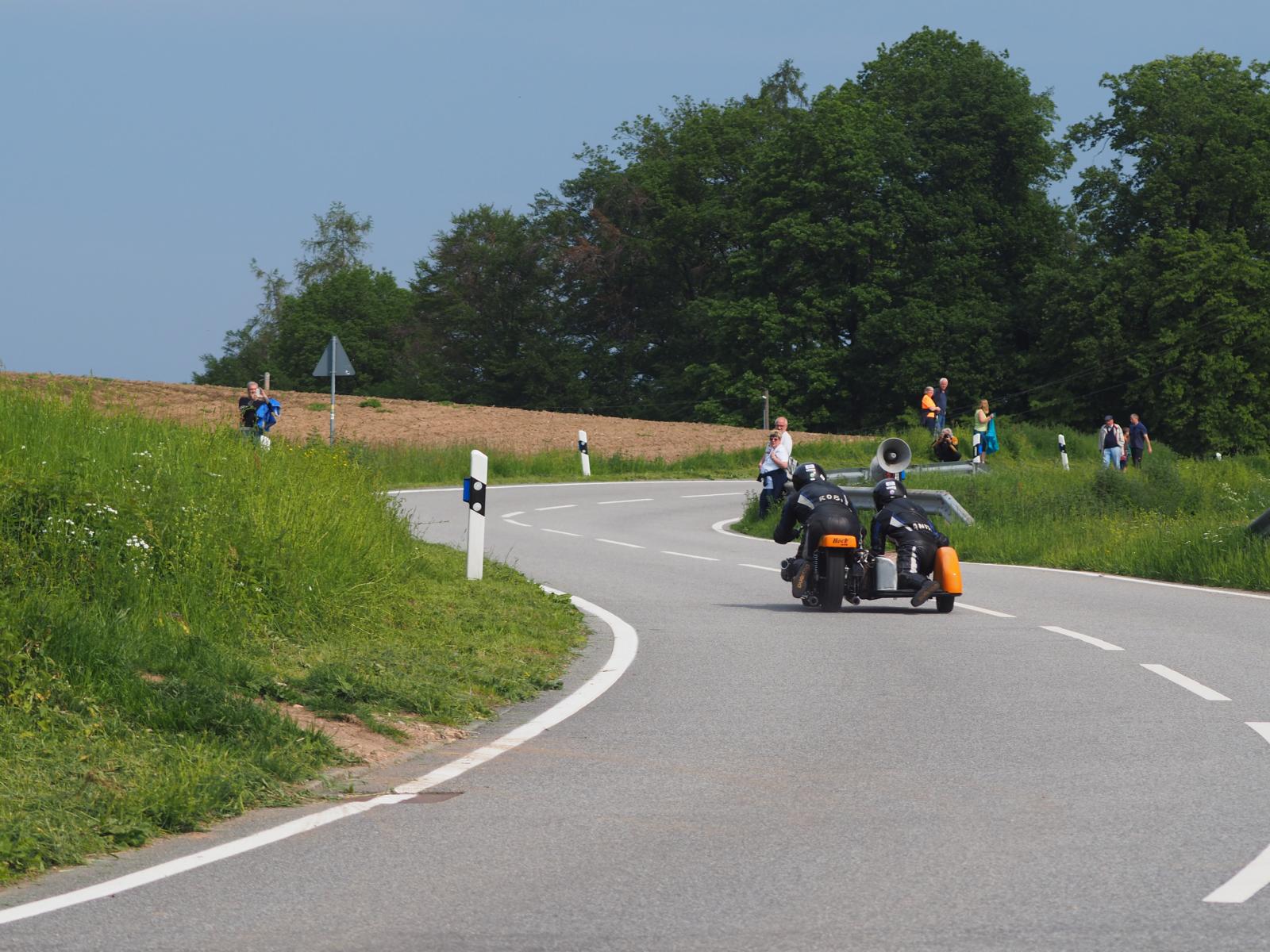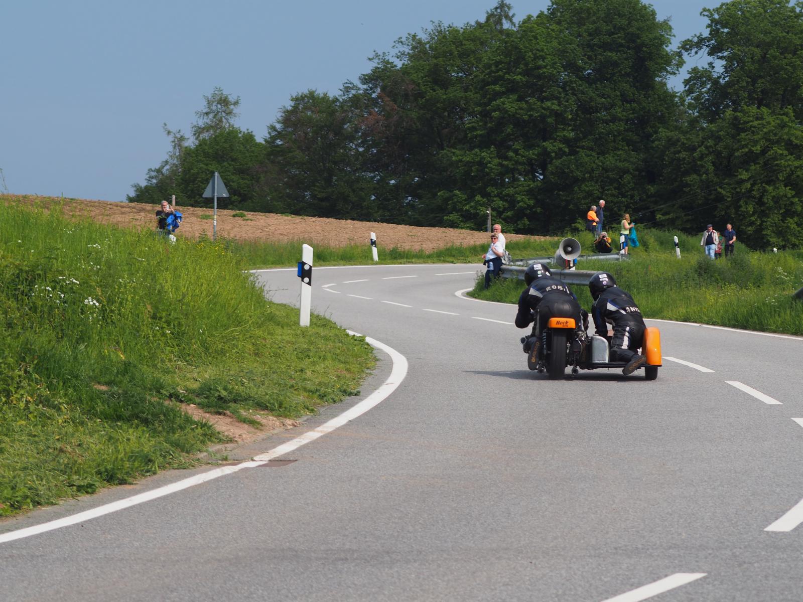 Grußworte von Rolf Steinhausen am Beginn der Veranstaltung, der nach 3 Jahren Pause nochmal in sein König Gespann stieg, begrüßten die zahlreichen Zuschauer. Wer sich in den Szene auskennt, weiß die alten Maschinen bieten nicht nur einen Augenschmaus, sondern auch den besonderen Sound der alten Motorkonzepte.