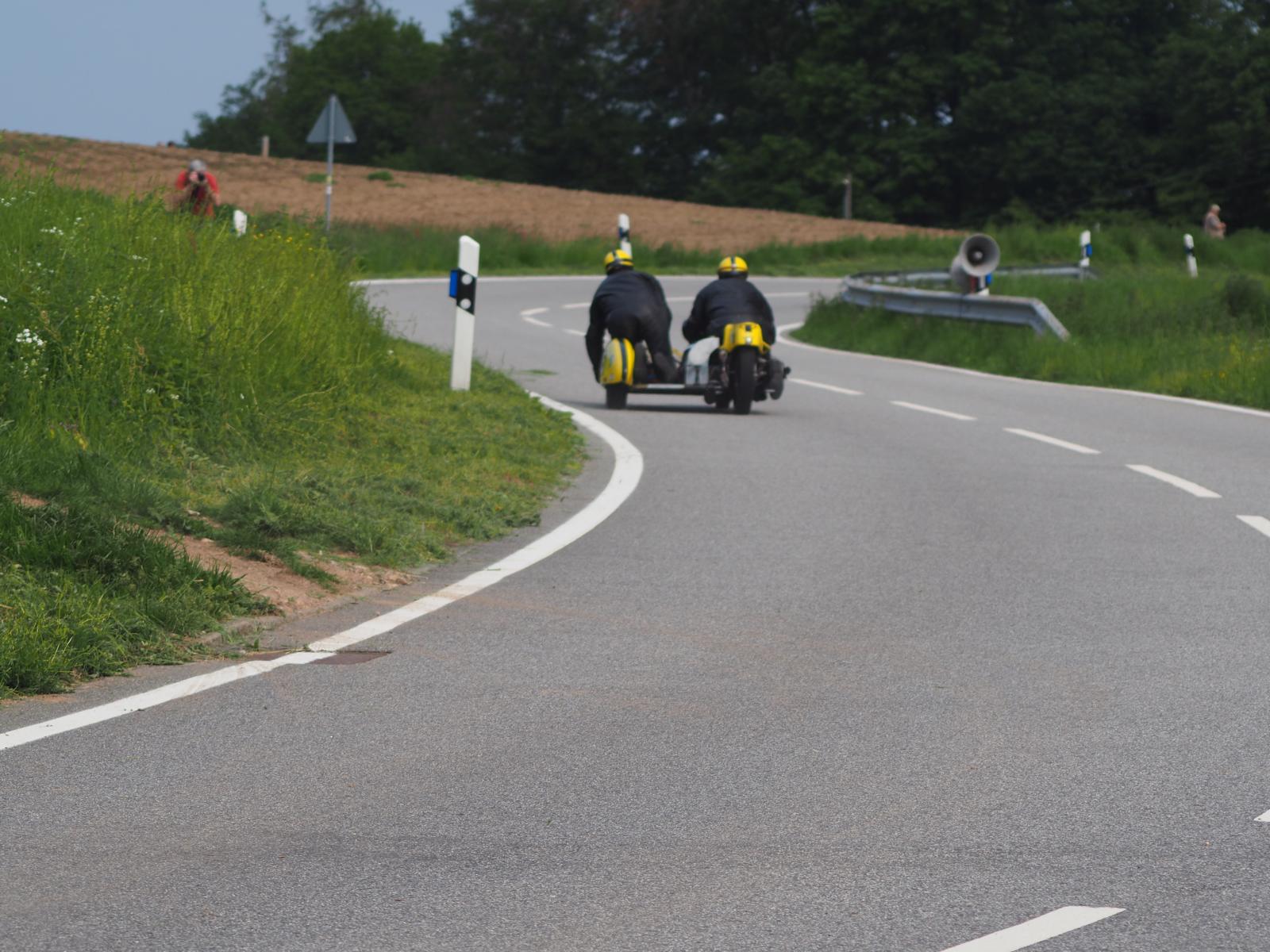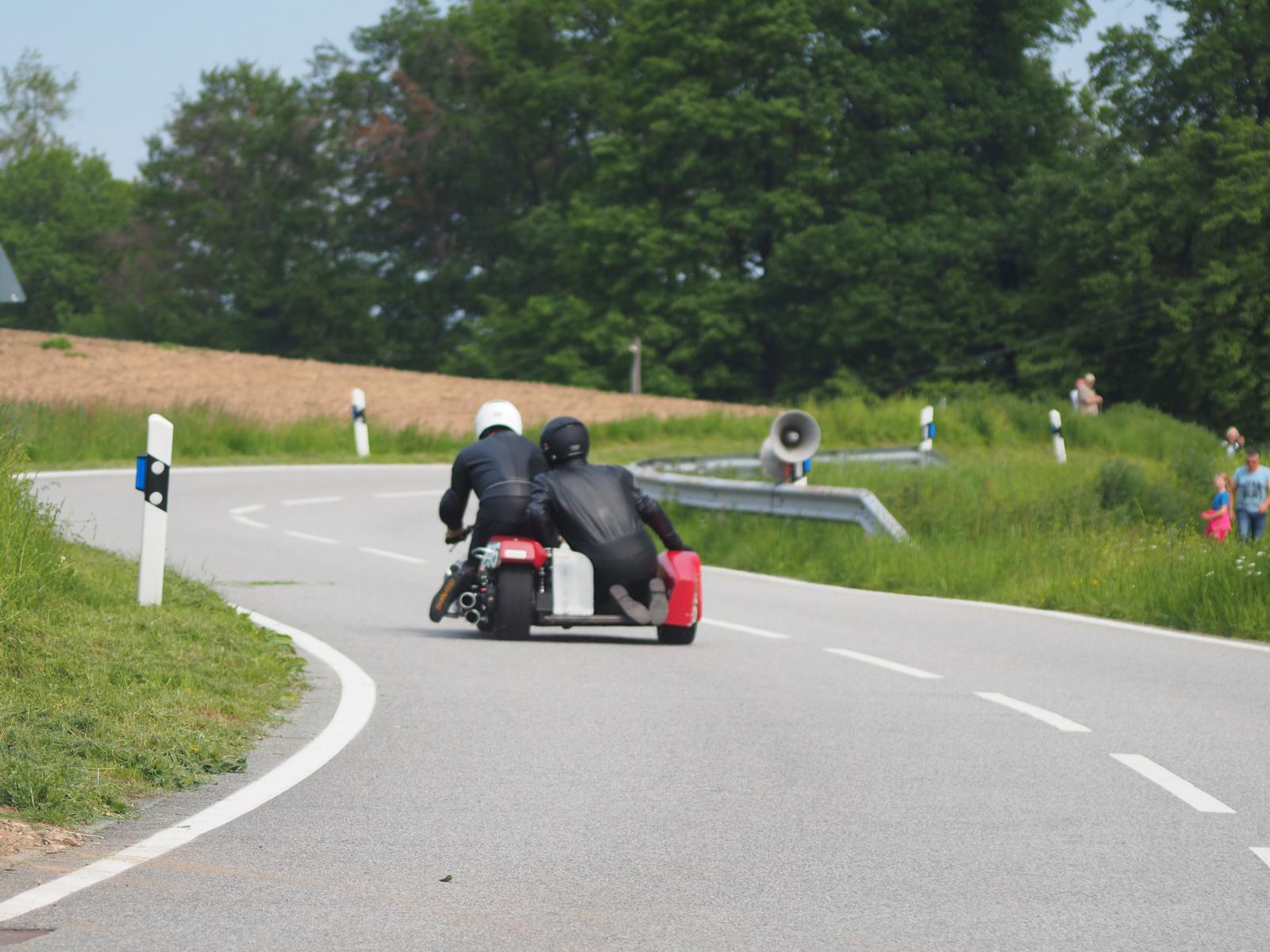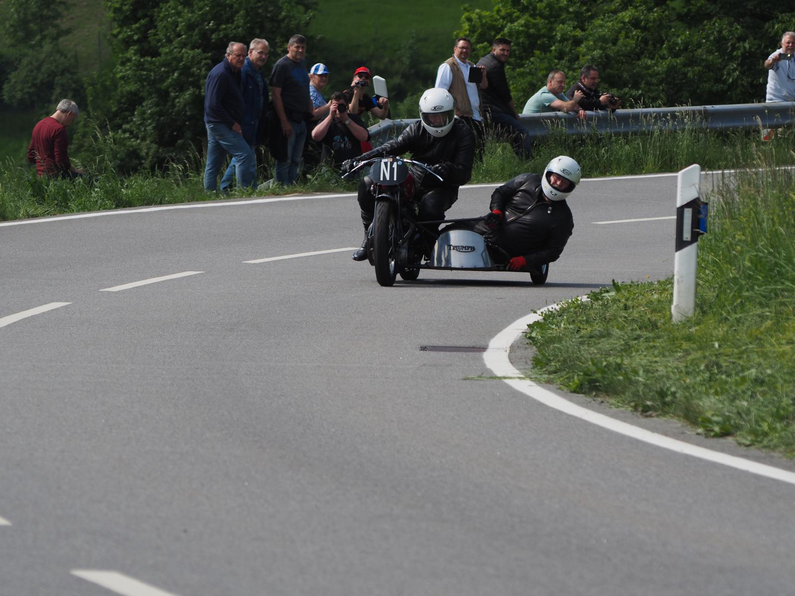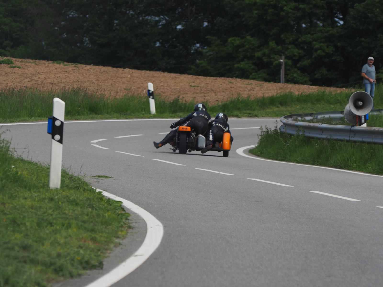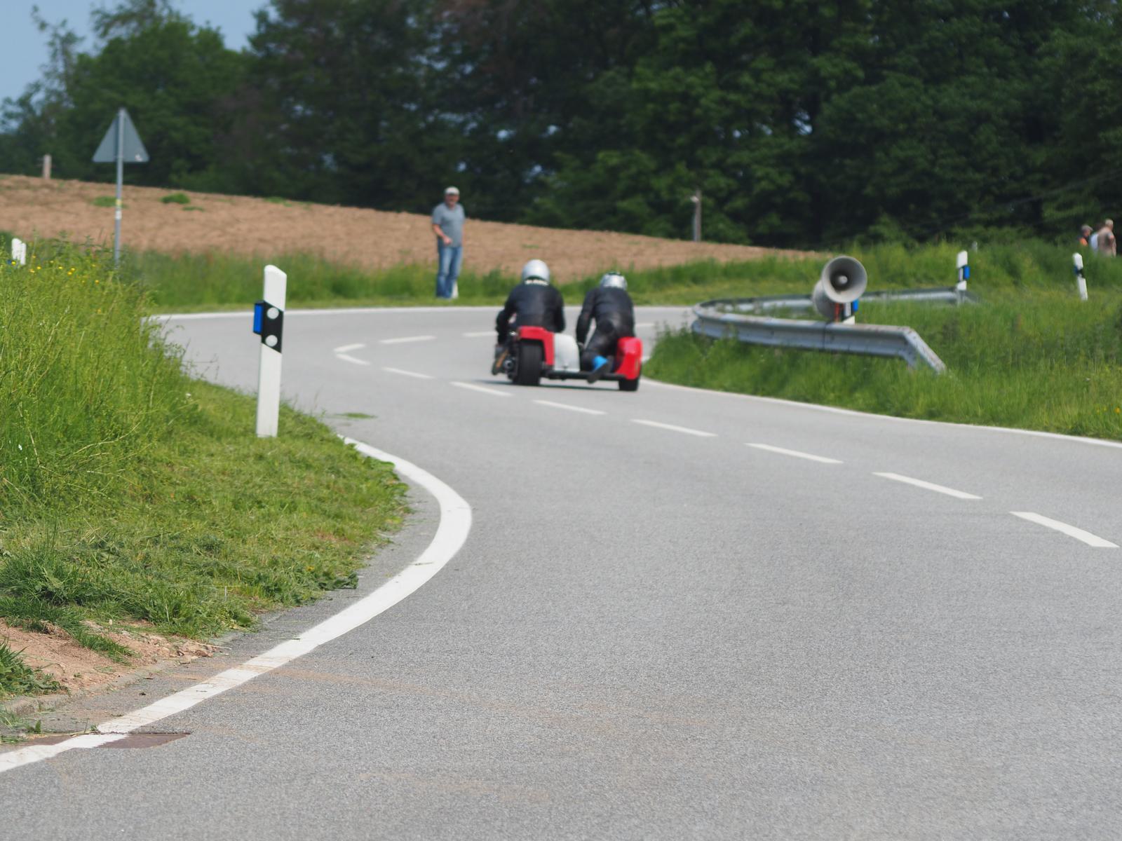 Grußworte von Rolf Steinhausen am Beginn der Veranstaltung, der nach 3 Jahren Pause nochmal in sein König Gespann stieg, begrüßten die zahlreichen Zuschauer. Wer sich in den Szene auskennt, weiß die alten Maschinen bieten nicht nur einen Augenschmaus, sondern auch den besonderen Sound der alten Motorkonzepte.