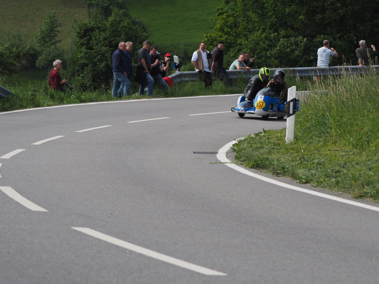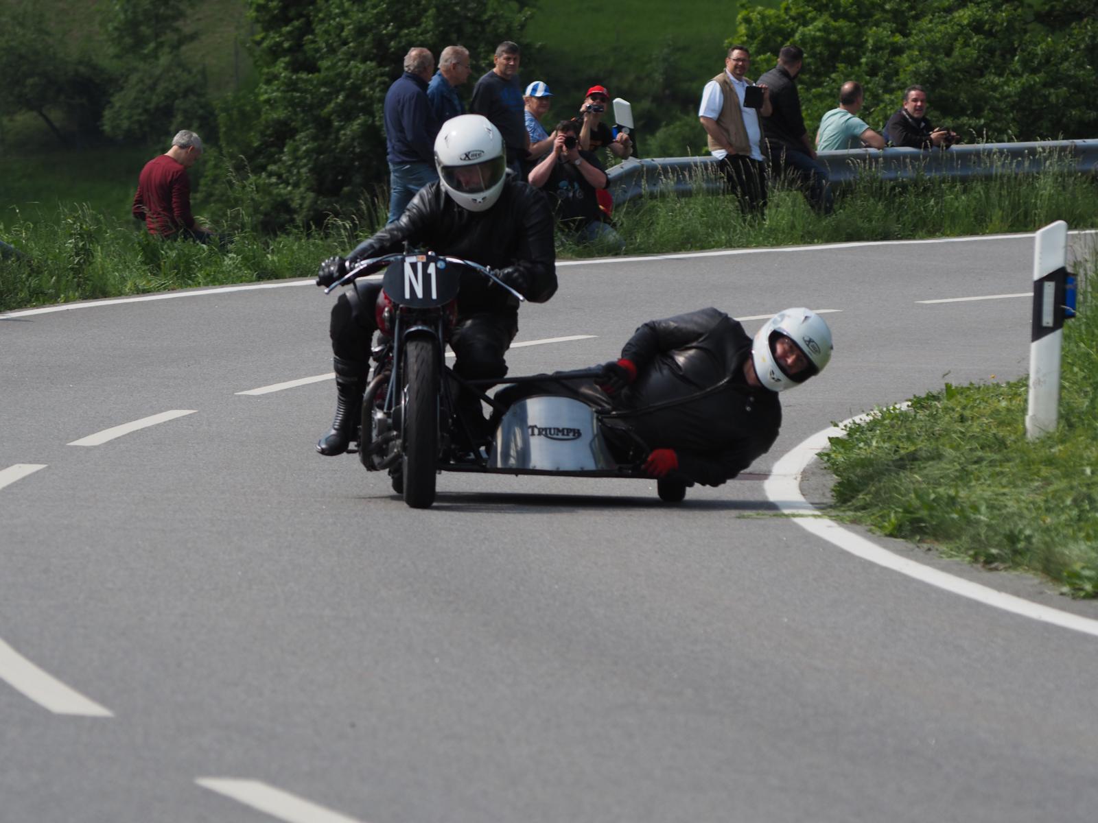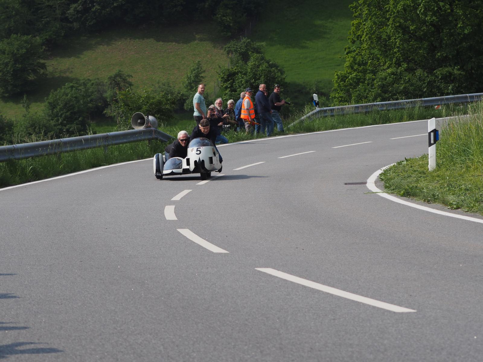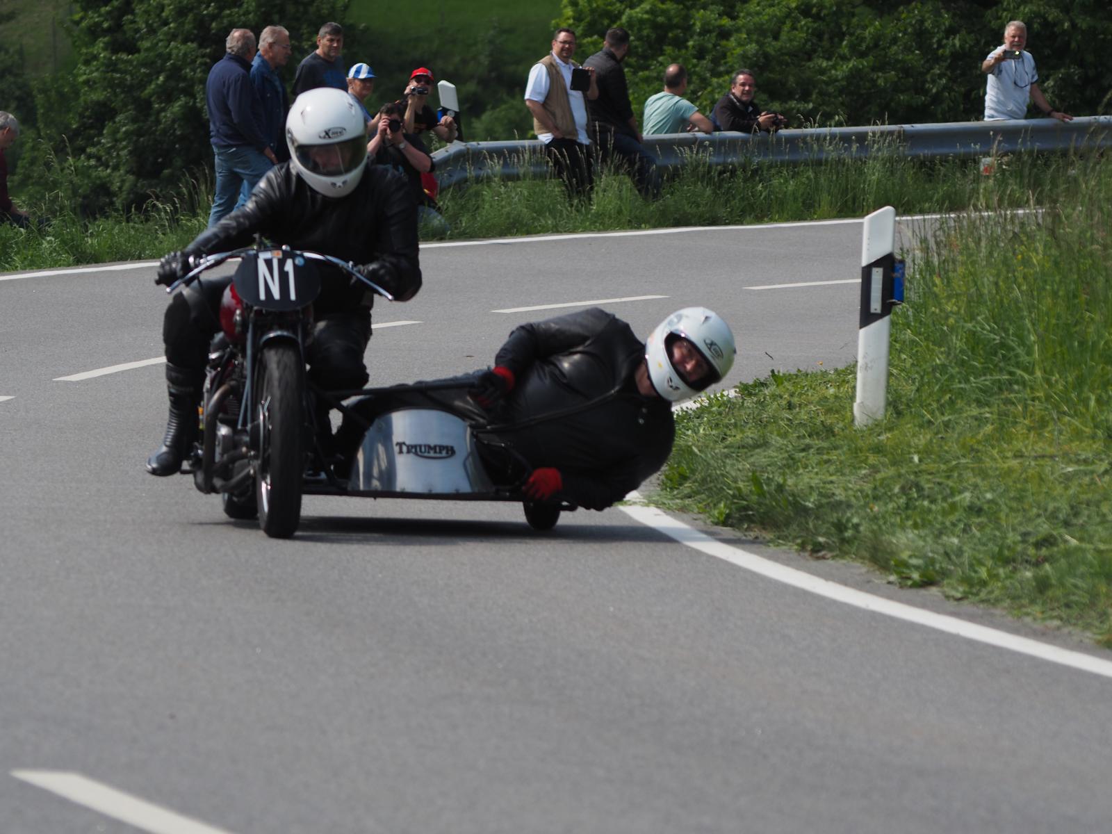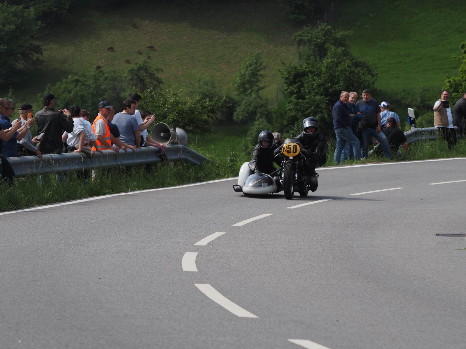 Grußworte von Rolf Steinhausen am Beginn der Veranstaltung, der nach 3 Jahren Pause nochmal in sein König Gespann stieg, begrüßten die zahlreichen Zuschauer. Wer sich in den Szene auskennt, weiß die alten Maschinen bieten nicht nur einen Augenschmaus, sondern auch den besonderen Sound der alten Motorkonzepte.