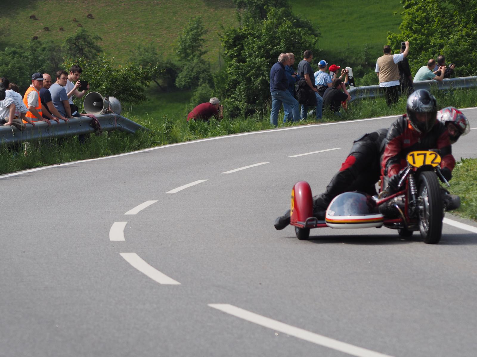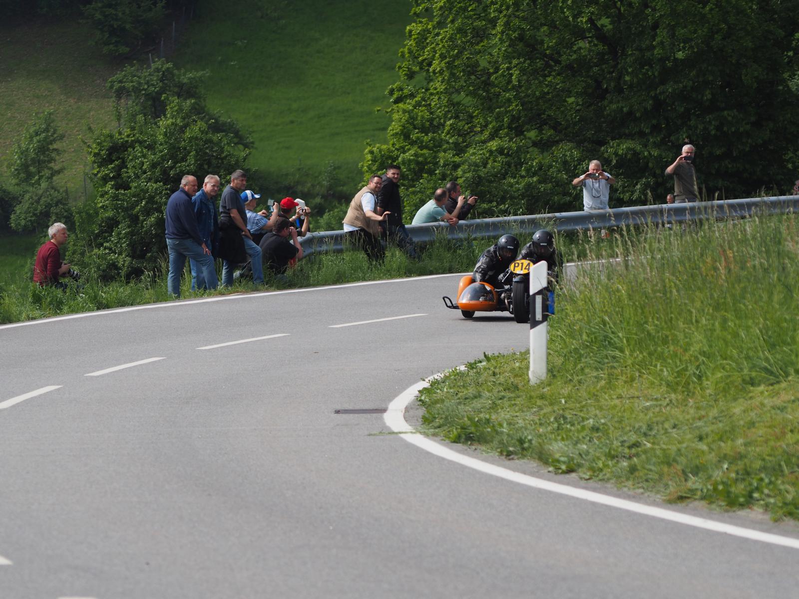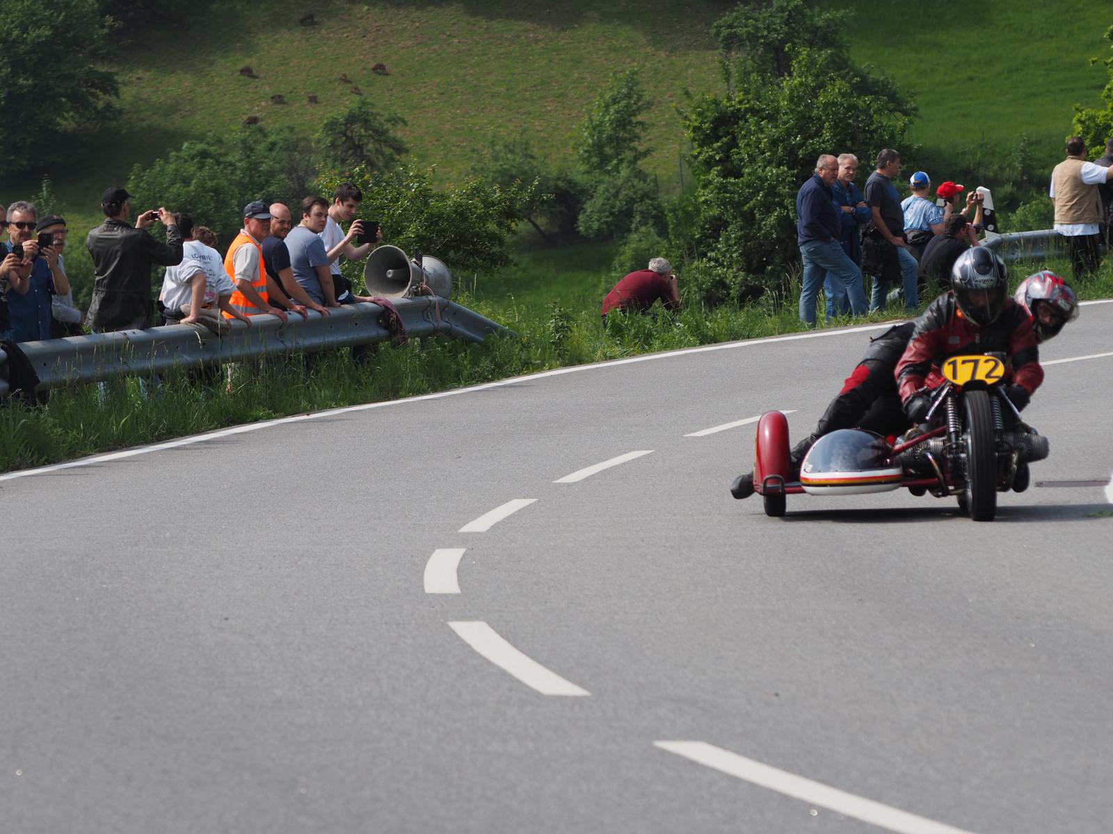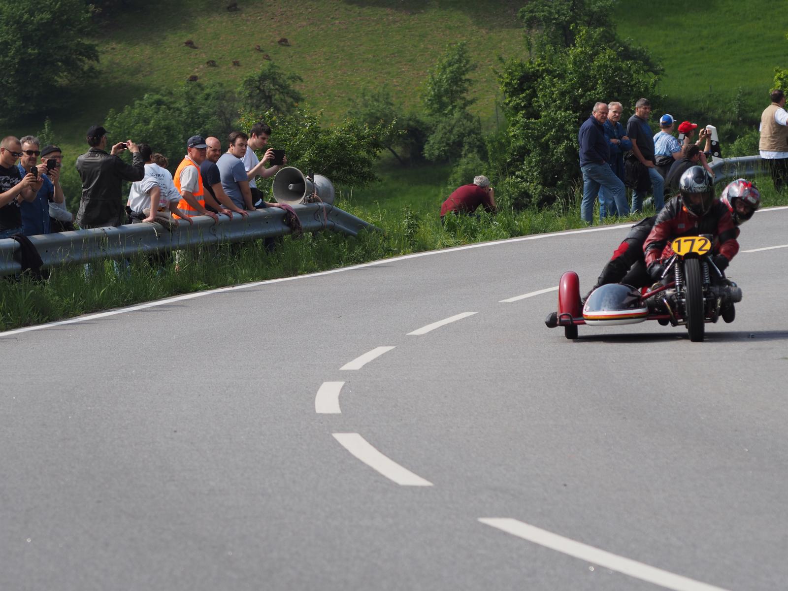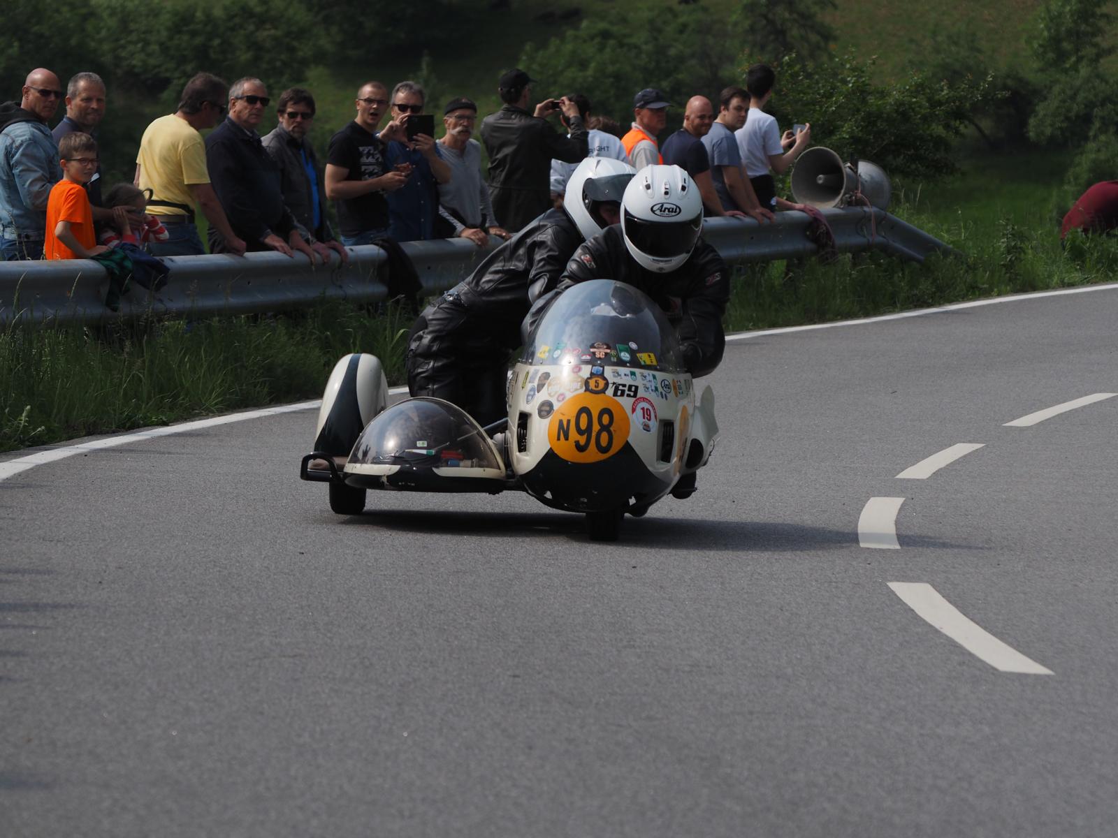 Grußworte von Rolf Steinhausen am Beginn der Veranstaltung, der nach 3 Jahren Pause nochmal in sein König Gespann stieg, begrüßten die zahlreichen Zuschauer. Wer sich in den Szene auskennt, weiß die alten Maschinen bieten nicht nur einen Augenschmaus, sondern auch den besonderen Sound der alten Motorkonzepte.