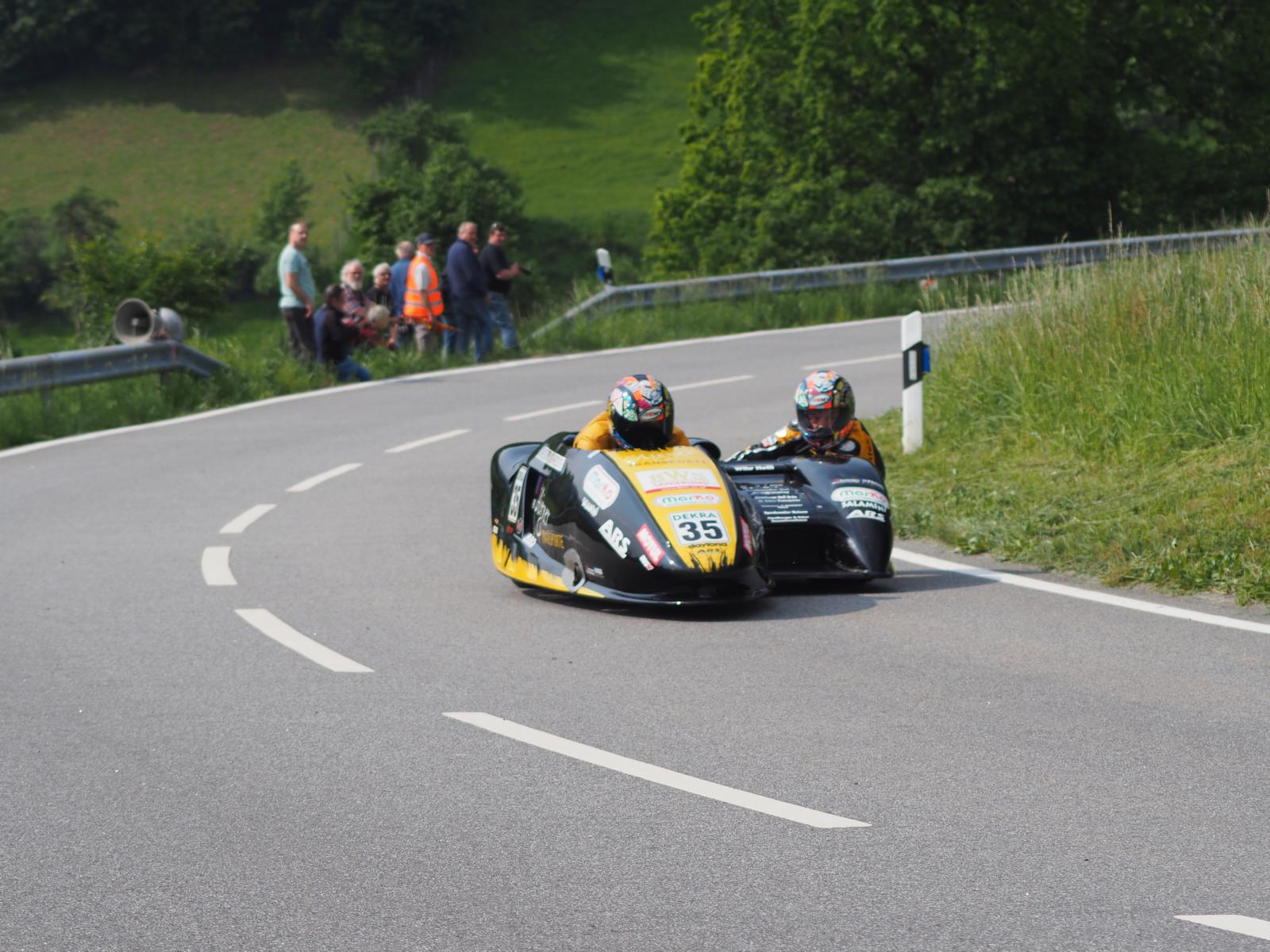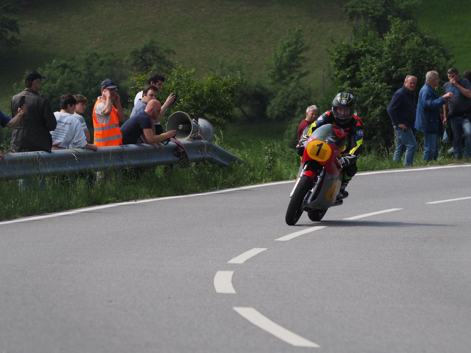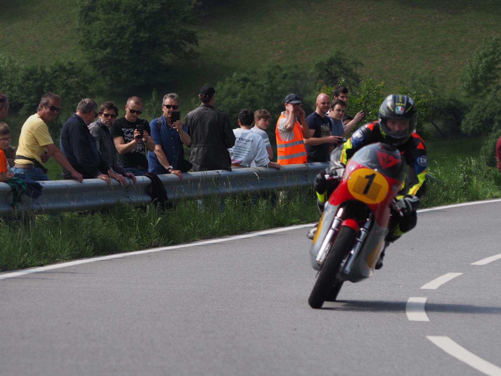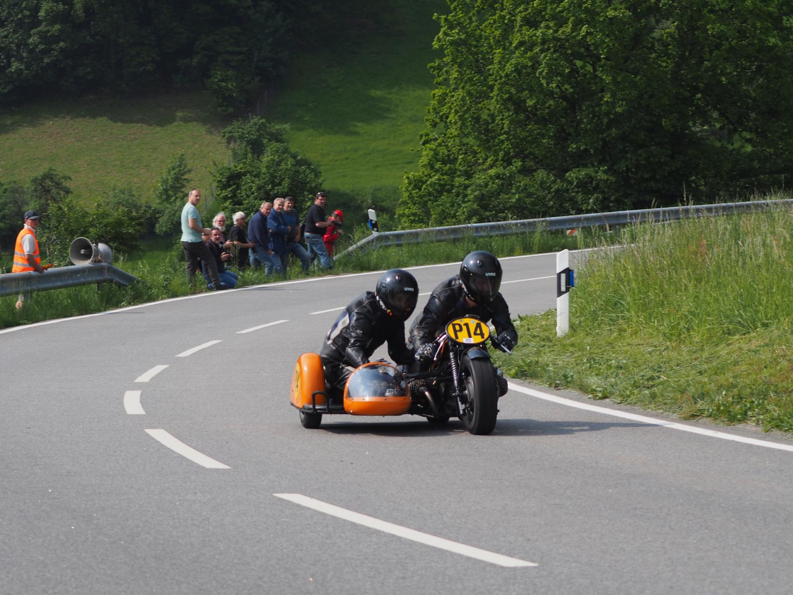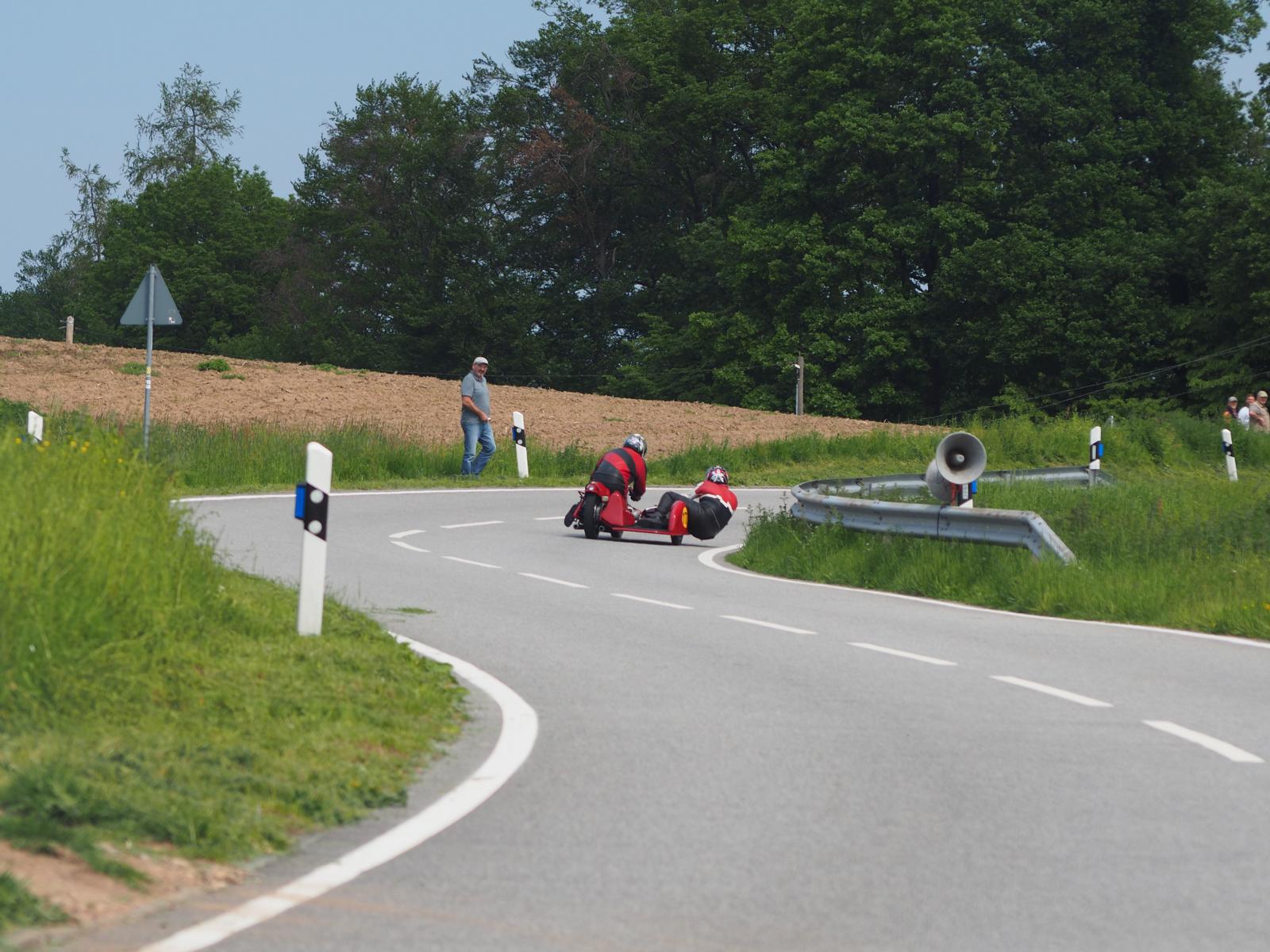 Grußworte von Rolf Steinhausen am Beginn der Veranstaltung, der nach 3 Jahren Pause nochmal in sein König Gespann stieg, begrüßten die zahlreichen Zuschauer. Wer sich in den Szene auskennt, weiß die alten Maschinen bieten nicht nur einen Augenschmaus, sondern auch den besonderen Sound der alten Motorkonzepte.