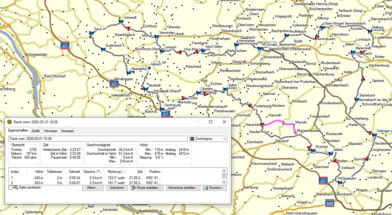 „Westerwald, über deine Höhen pfeift der Wind so kalt…“ lautet ein Liedtext und beschreibt vortrefflich das kleine Mittelgebirge. Wenn man aber einen schönen Tag erwischt, läßt es sich ganz vortrefflich dort Motorradfahren. Ein Tip aus der Verwandtschaft und schon geht es los: