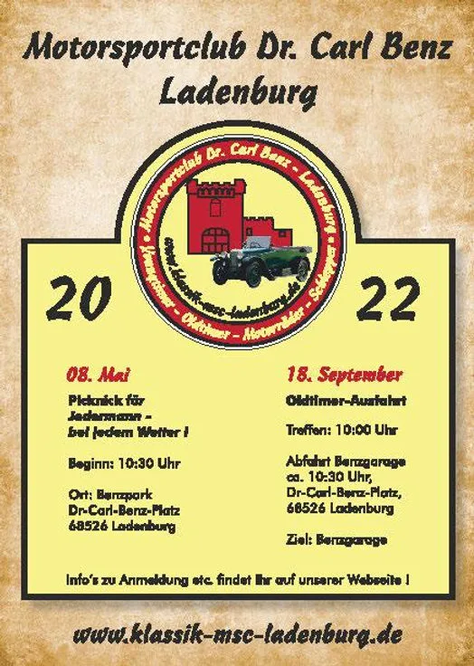 Ein Muss für Oldtimerfreunde zum zwanglosen Treffen auf dem Anwesen von Automobilerfinder Carl Benz. Willkommen sind auch Liebhaber von Youngtimer, Motorräder, Fahrräder und Schlepper.